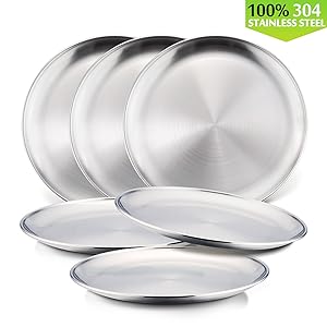 - SET OF 4 - 4 x plates: 8 x 8 x 0.6inch (20 x 20 x 1.5cm) , Its metallic looks an advanced, Not too heavy, Perfect for home daily use, Suitable for camping, gathering, party, gift, etc