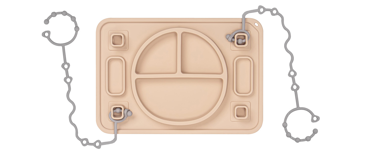 - NO MORE STOOPING TO PICK UP | Our silicone placemat has four built-in strong suction cups to effectively attach to the tabletop, secure your baby's toys or teethers to the four silicone straps to keep your baby busy. Please clean the desktop and suction cup surface before use to get the best adsorption effect, and do a tensile test for baby's safety before putting food.
