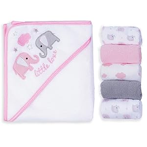 Viviland Baby Towels and Washcloths, Soft Absorbent Pink Baby Bath Towel Set, Elephant Hooded Towels with 5 Infant Face Washcloths (6 Pieces)