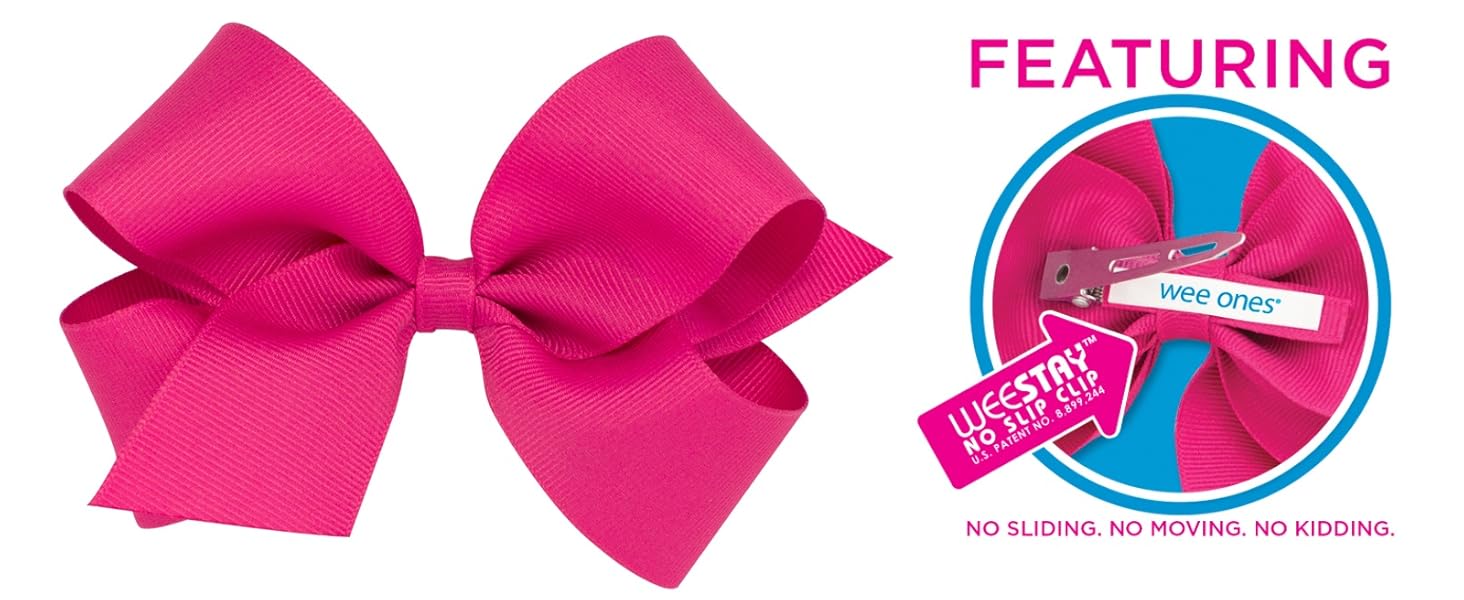 Home / Shop / Wee Ones Girls' Classic Grosgrain Moonstitch Edge Hair Bow on a WeeStay Hair Clip, Medium, White with Light Pink